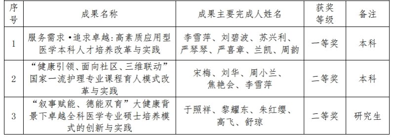 在人才培养、教育教学改革以及专业建设方面取得的新进展。学校将充分发挥获奖成果的示范引领作用,积极探索新时代教育教学方法,不断提高教书育人本领,培养德智体美劳全面发展的高素质应用型医药卫生人才。